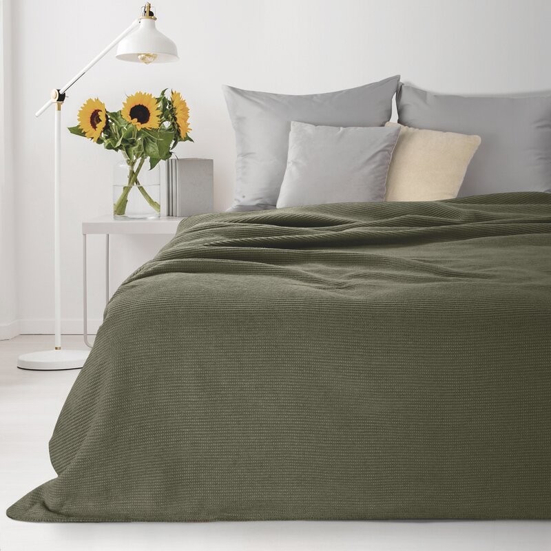 Koc bardzo miękki w dotyku, o strukturze waflowej szerokość: 200 cm, długość: 220 cm, kolor: zielony, Gramatura: 345 GSM GSM, Skład: 50% bawełna, 30% poliester, 20% akryl