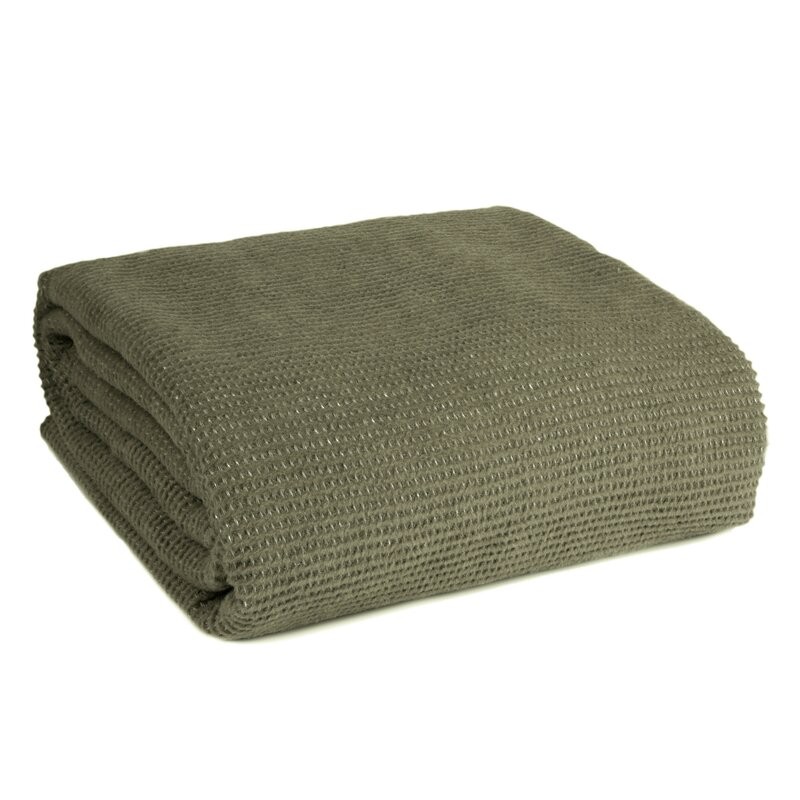 Koc bardzo miękki w dotyku, o strukturze waflowej szerokość: 200 cm, długość: 220 cm, kolor: zielony, Gramatura: 345 GSM GSM, Skład: 50% bawełna, 30% poliester, 20% akryl