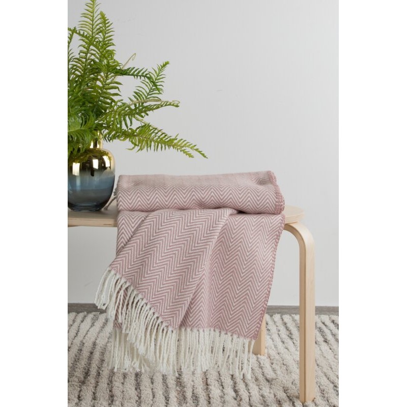 Koc bardzo miękki w dotyku, o strukturze waflowej szerokość: 180 cm, długość: 220 cm, kolor: pudrowy, Gramatura: 345 GSM GSM, Skład: 50% bawełna 30% poliester 20% akryl