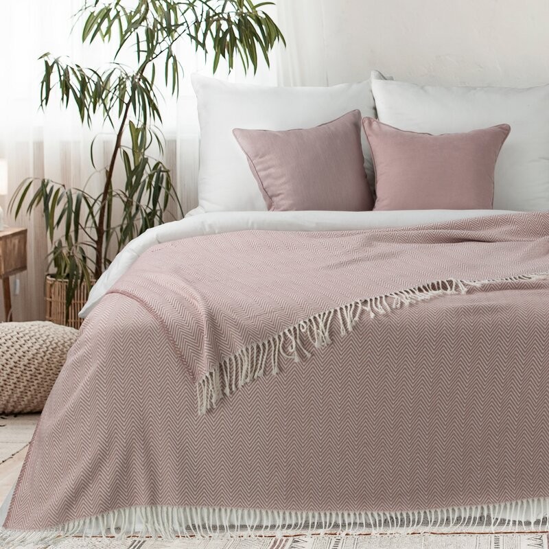 Koc bardzo miękki w dotyku, o strukturze waflowej szerokość: 200 cm, długość: 220 cm, kolor: pudrowy, Gramatura: 345 GSM GSM, Skład: 50% bawełna 30% poliester 20% akryl
