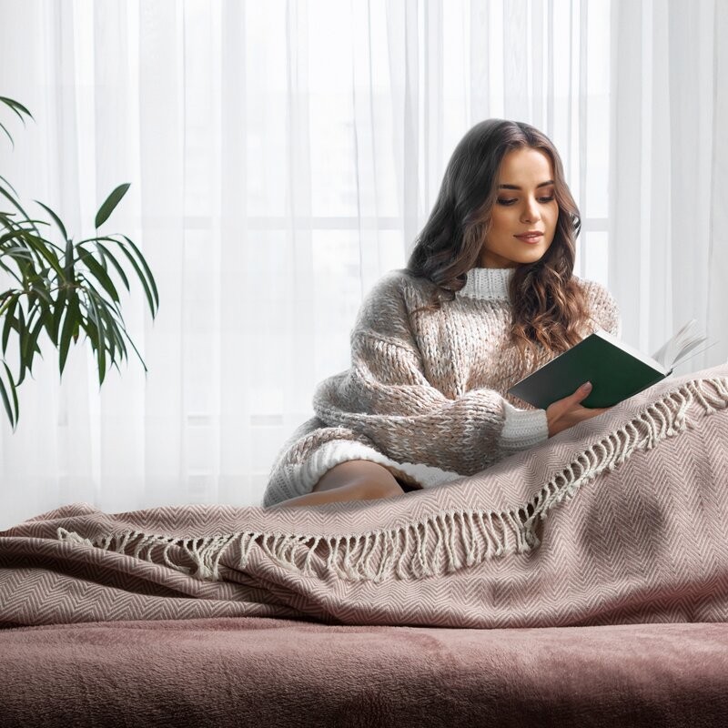 Koc AKRYL 5 miękki w dotyku koc z drobnym strukturalnym wzorem i frędzlami