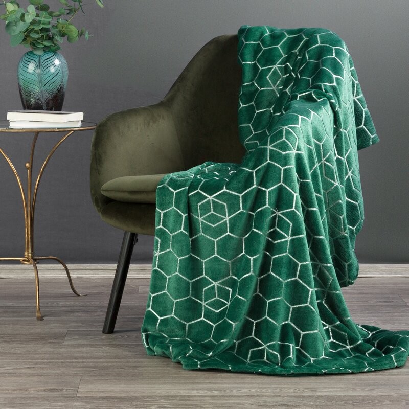 Koc 150x200 cm ciemnozielony bardzo miękki w dotyku z wytłaczanym wzorem 3D CINDY 6 Design 91