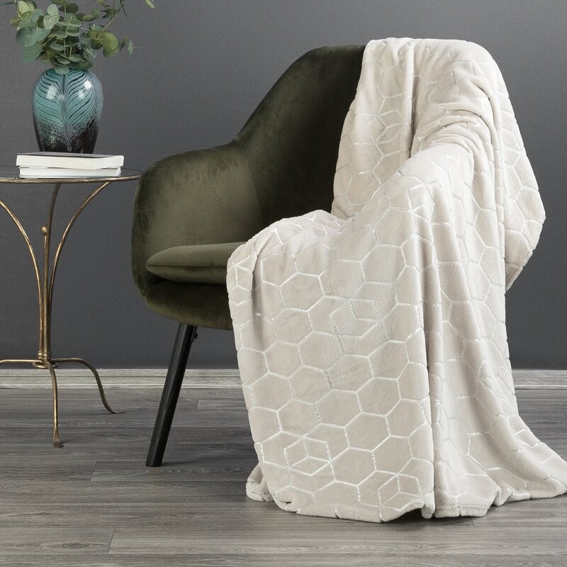 Koc flano bardzo miękki w dotyku z efektem 3d szerokość: 200 cm, długość: 220 cm, kolor: beżowy, Gramatura: 260 GSM, Skład: 100% poliester