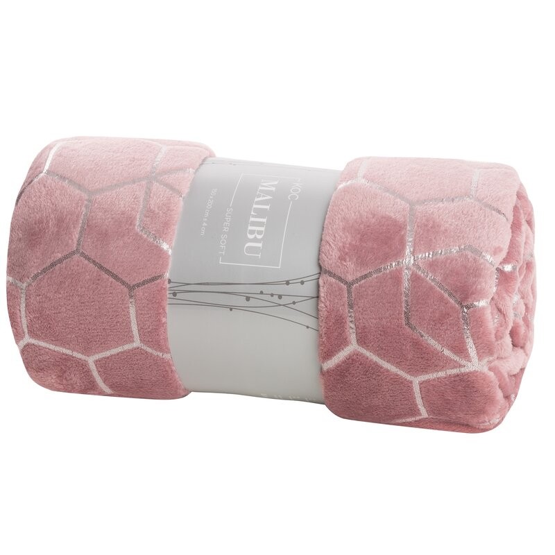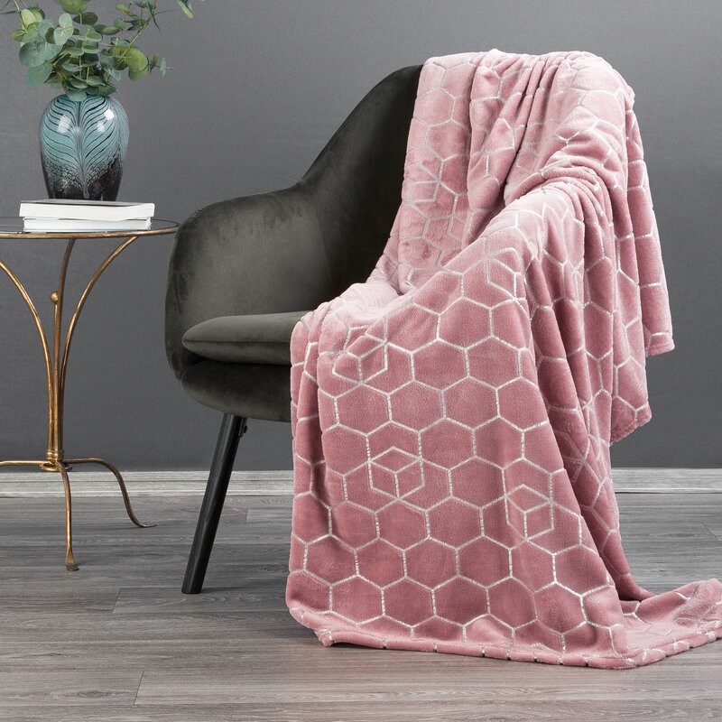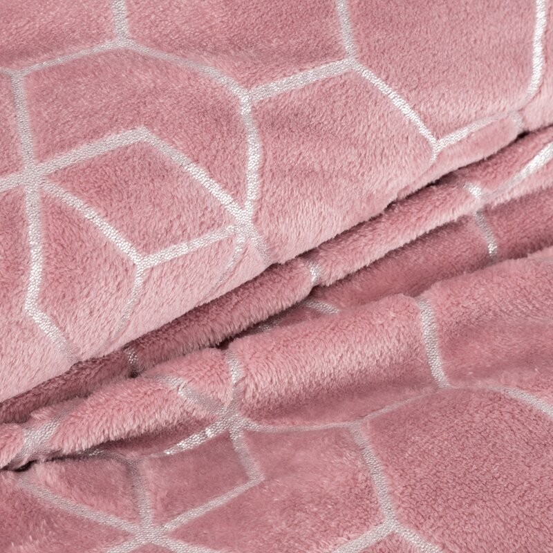 Koc flano bardzo miękki w dotyku z efektem 3d szerokość: 150 cm, długość: 200 cm, kolor: pudrowy róż, Gramatura: 250 GSM GSM, Skład: 100% poliester