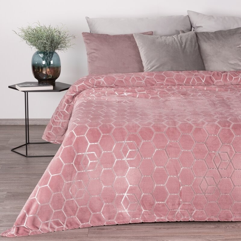 Koc 200x220 cm pudrowy miękki w dotyku z wytłaczanym wzorem 3D CINDY 6 Design 91