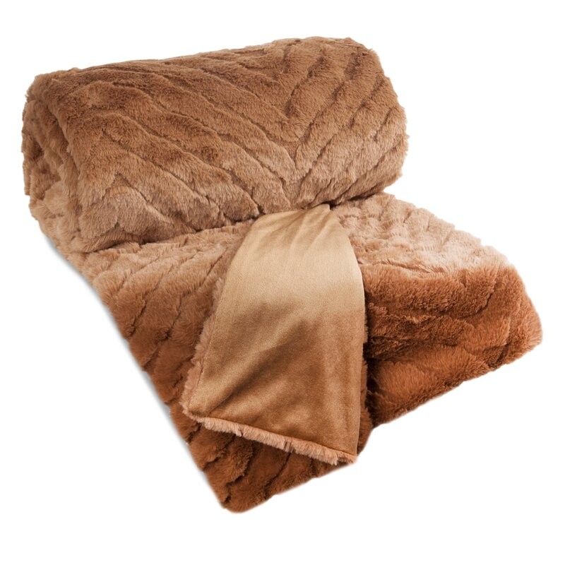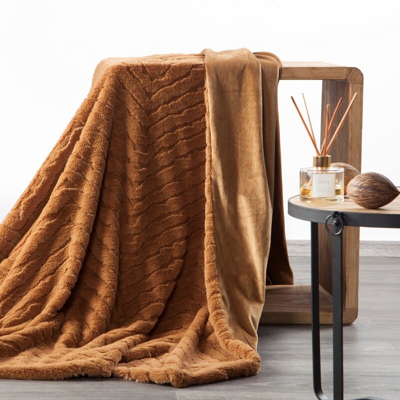 Miękki, futrzany koc z efektem 3d szerokość: 150 cm, długość: 200 cm, kolor: ciemnobeżowy, Gramatura: 360+180 GSM, Skład: 100% poliester
