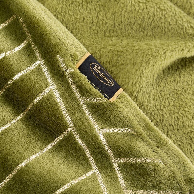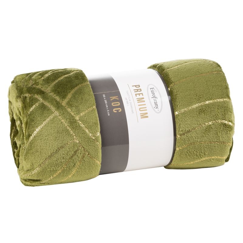 Koc flano bardzo miękki w dotyku z błyszczącym nadrukiem szerokość: 150 cm, długość: 200 cm, kolor: oliwkowy, Gramatura: 250GSM GSM, Skład: 100%poliester