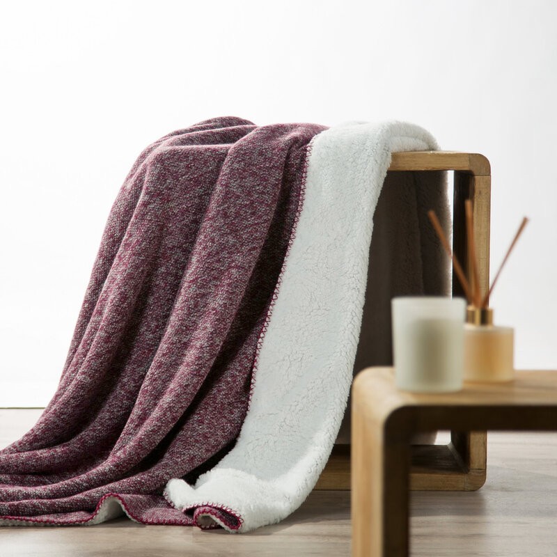 Niezwykle miękki w dotyku koc dwustronny szerokość: 150 cm, długość: 200 cm, kolor: bordowy, Gramatura: 300 GSM, Skład: 100% poliester