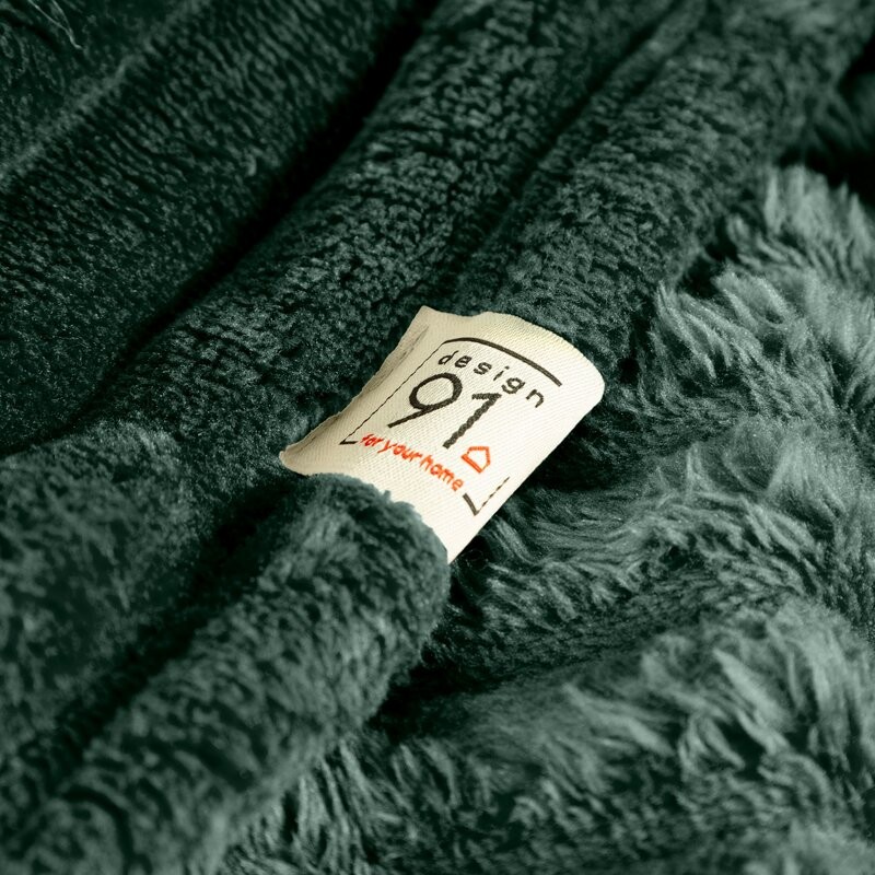 Klasyczny koc z przyjemnego w dotyku włókna w technologii mikroflano. Jednobarwna, puszysta faktura ozdobiona jest minimalistycznym tłoczeniem w formie jodełki. szerokość: 70 cm, długość: 160 cm, kolor: ciemnozielony, Gramatura: 300 GSM, Skład: 100% poliester