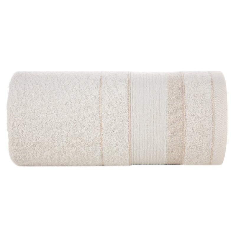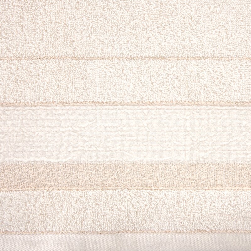 Komplet ręczników z ozdobną bordiurą w paseczki szerokość: 36 cm, długość: 25 cm, kolor: kremowy, Gramatura: 450 GSM, Skład: 100% bawełna; część ozdobna: 95% bawełna, 5% poliester SZT.4