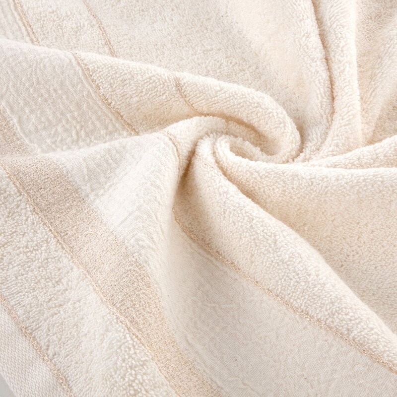Ręcznik bawełniany z żakardową bordiurą z błyszczącą nicią szerokość: 46 cm, długość: 36 cm, kolor: beżowy, Gramatura: 500 GSM, Skład: 100% bawełna; 95% bawełna, 5% poliester