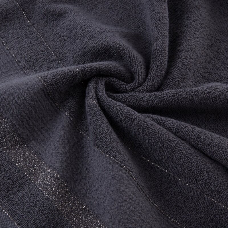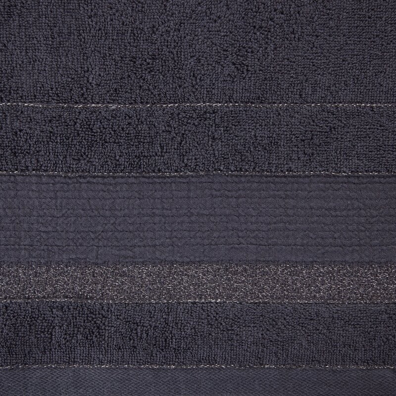 Komplet ręczników z ozdobną bordiurą w paseczki szerokość: 36 cm, długość: 25 cm, kolor: grafitowy, Gramatura: 450 GSM, Skład: 100% bawełna; część ozdobna: 95% bawełna, 5% poliester SZT.4