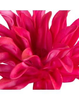 Sztuczny kwiat dekoracyjny o średnicy aż 40 cm, wykonany z ogromną dbałością o detale to dodatek, który wyróżni się w każdym wnętrzu. Polecamy go szczególnie do bukietów i różnorodnych kompozycji kwiatowych. Płatki kwiatu wykonane są z plastycznej pianki foamiran doskonale odwzorowującej naturalny wygląd i obsypane lśniącym brokatem. Ogromną zaletą kwiatów syntetycznych jest fakt, że zawsze wyglądają świeżo i nie wymagają specjalnej pielęgnacji, wystarczy przetarcie wilgotną ściereczką. Syntetyczne kwiaty idealnie nadają się do wystroju wnętrz, wnoszą do wnętrza świeżość i cieszą oko niezależnie od pory roku.