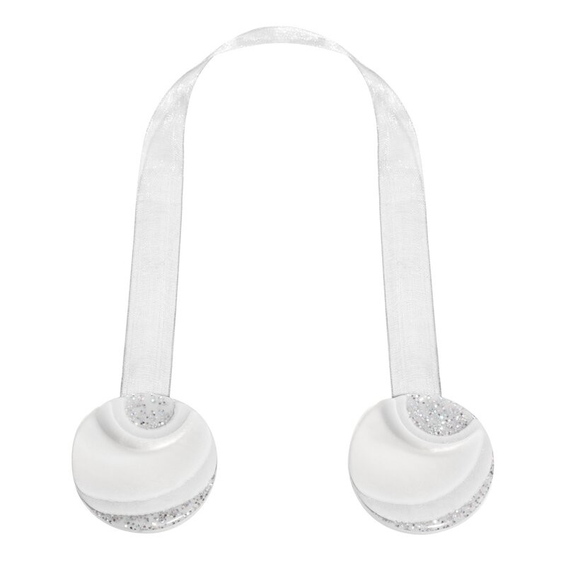 Komplet 2 szt. eleganckich magnesów dekoracyjnych to stylowy sposób na upięcie zasłon, firan lub lekkich tkanin. Połączone wstążka umożliwiają estetyczne i funkcjonalne upięcie materiału bez jego uszkadzania.