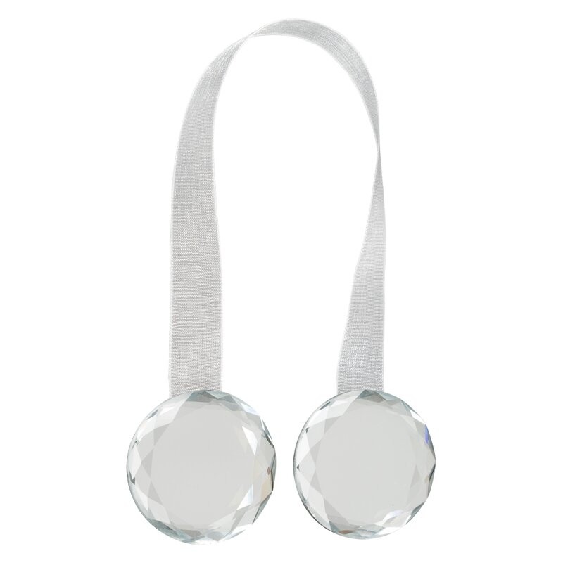 Komplet 2 szt. eleganckich magnesów dekoracyjnych to stylowy sposób na upięcie zasłon, firan lub lekkich tkanin. Połączone wstążka umożliwiają estetyczne i funkcjonalne upięcie materiału bez jego uszkadzania.