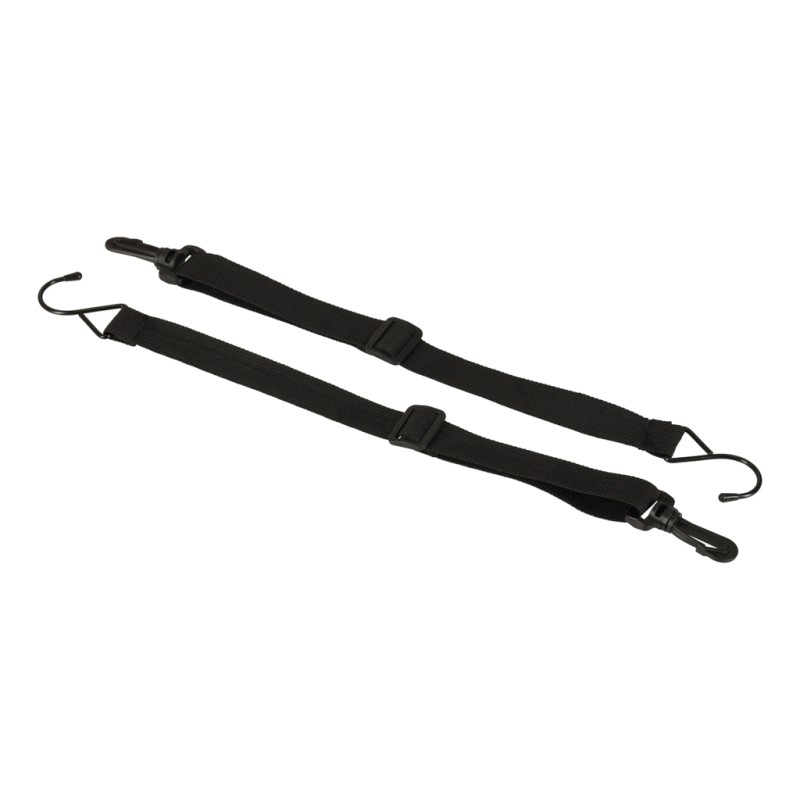 linki z haczykami + 4 metalowe oczka – dzięki nim można stabilnie przymocować organizer do bagażnika