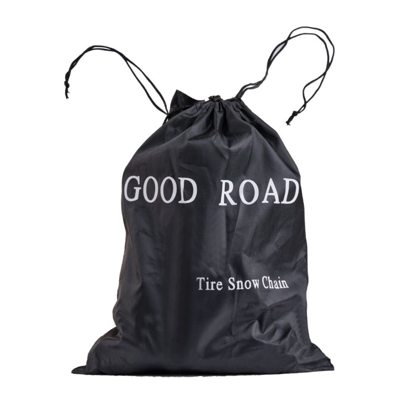 Zestaw łańcuchów jest zapakowany w praktyczny pokrowiec, co ułatwia jego przechowywanie w bagażniku, tak aby zawsze był pod ręką na wypadek zimowych trudności na drodze.