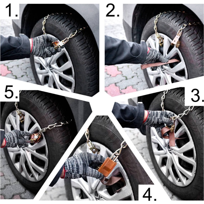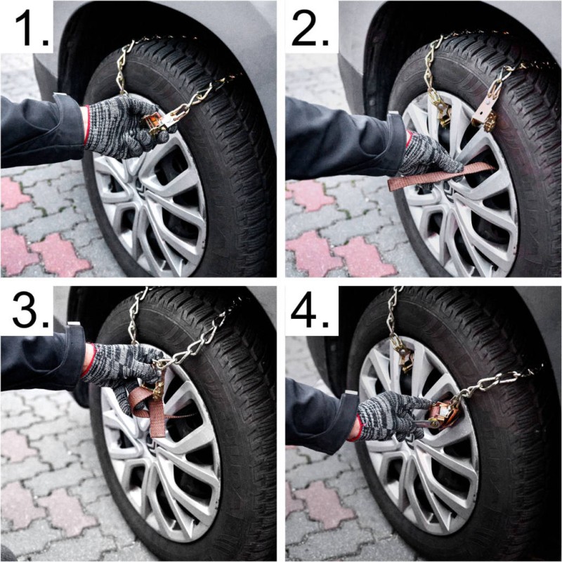 trwałość i odporność na warunki atmosferyczne – łańcuchy są wykonane z materiałów odpornych na ekstremalne temperatury i zmienne warunki atmosferyczne, co zapewnia ich niezawodność w zimowym sezonie