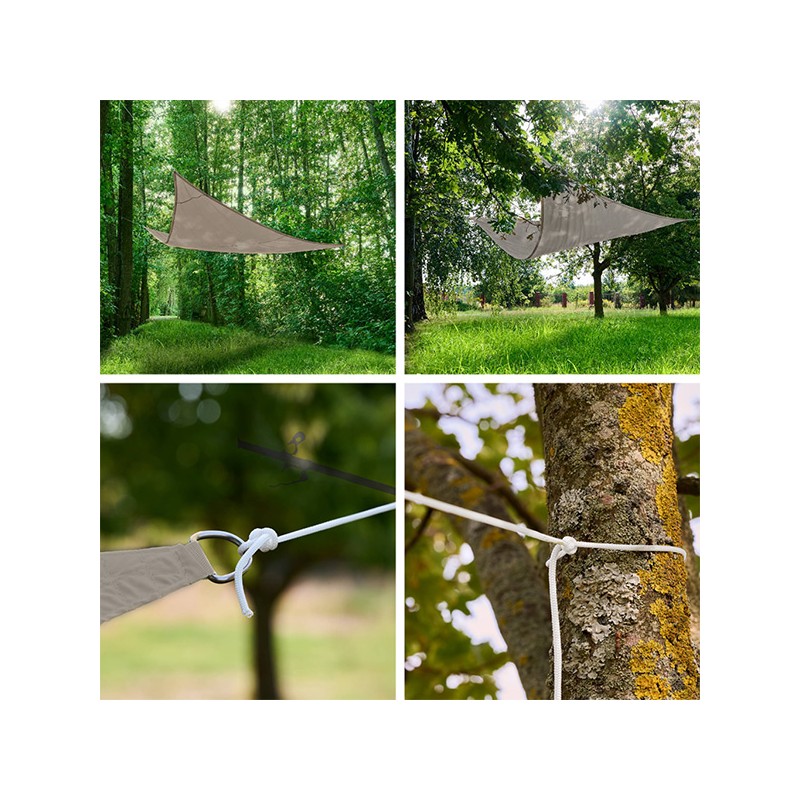 Łatwość montażu to jeden z największych atutów tego produktu. Do zestawu dołączona jest linka montażowa, co umożliwia bezpieczne i trwałe zamocowanie. Każdy punkt montażowy można dopasować do konkretnych warunków - bez względu na to, czy żagiel zawiesisz między ścianami budynku, nad pergolą czy wśród drzew.