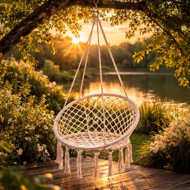 Z hamakiem w kształcie fotela relaks to czysta przyjemność! Daj się porwać marzeniom, zaparz ulubioną herbatę i weź wciągającą książkę.
