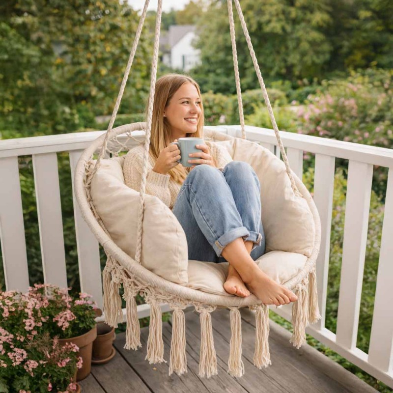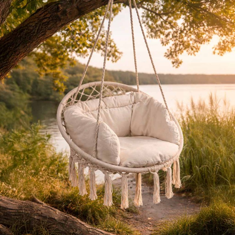 Z hamakiem w kształcie fotela relaks to czysta przyjemność! Daj się porwać marzeniom, zaparz ulubioną herbatę i weź wciągającą książkę.