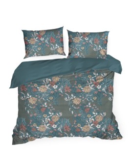Pościel 160x200 cm bawełniana kolor butelkowa zieleń, kremowy zdobiona nadrukiem CRISTIAN