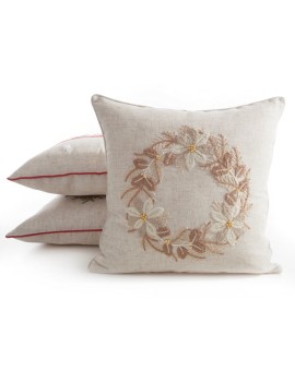 świąteczna poszewka dekoracyjna z aplikacja imitująca len szerokość: 45 cm, długość: 45 cm, kolor: beżowy, Gramatura: 160 GSM, Skład: 90% poliester, 10% len