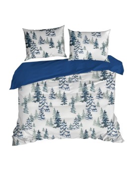 Komplet pościeli bawełnianej z nadrukiem świątecznym szerokość: 220 cm, długość: 200 cm, kolor: granatowy, Gramatura: 105 GSM, Skład: 100% bawełna
