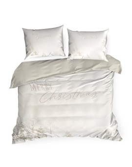 Komplet pościeli bawełnianej z nadrukiem świątecznym szerokość: 140 cm, długość: 200 cm, kolor: biały, Gramatura: 105 GSM, Skład: 100% bawełna