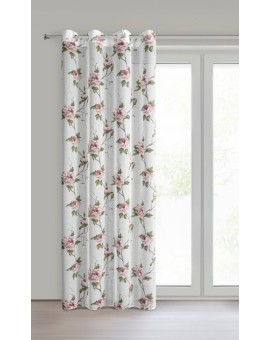 Zasłona w stylu eco z kwiatowym nadrukiem szerokość: 135 cm, długość: 250 cm, kolor: biały, Gramatura: 80 GSM, Skład: 100% poliester