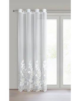 Firana gotowa zdobiona haftem szerokość: 140 cm, długość: 250 cm, kolor: biały, Gramatura: 60 GSM, Skład: 100% poliester