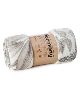 Koc typu flano z nadrukowanym motywem liści szerokość: 150 cm, długość: 200 cm, kolor: kremowy, Gramatura: 210 GSM, Skład: 100% poliester
