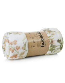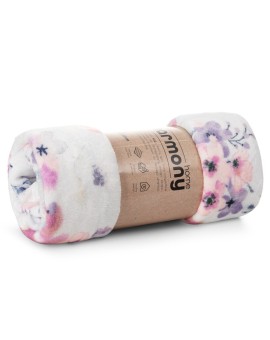 Koc typu flano z nadrukowanym motywem kwiatowym szerokość: 150 cm, długość: 200 cm, kolor: biały, Gramatura: 210 GSM, Skład: 100% poliester