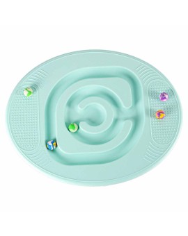 Stolik edukacyjny Lulilo Ludo 2w1 wyposażono w tablicę manipulacyjną z labiryntem koralików, sorterem, cymbałkami i elementami ruchomymi. Po demontażu panelu tworzy płaską powierzchnię roboczą. Stabilna, drewniana konstrukcja zapewnia bezpieczeństwo