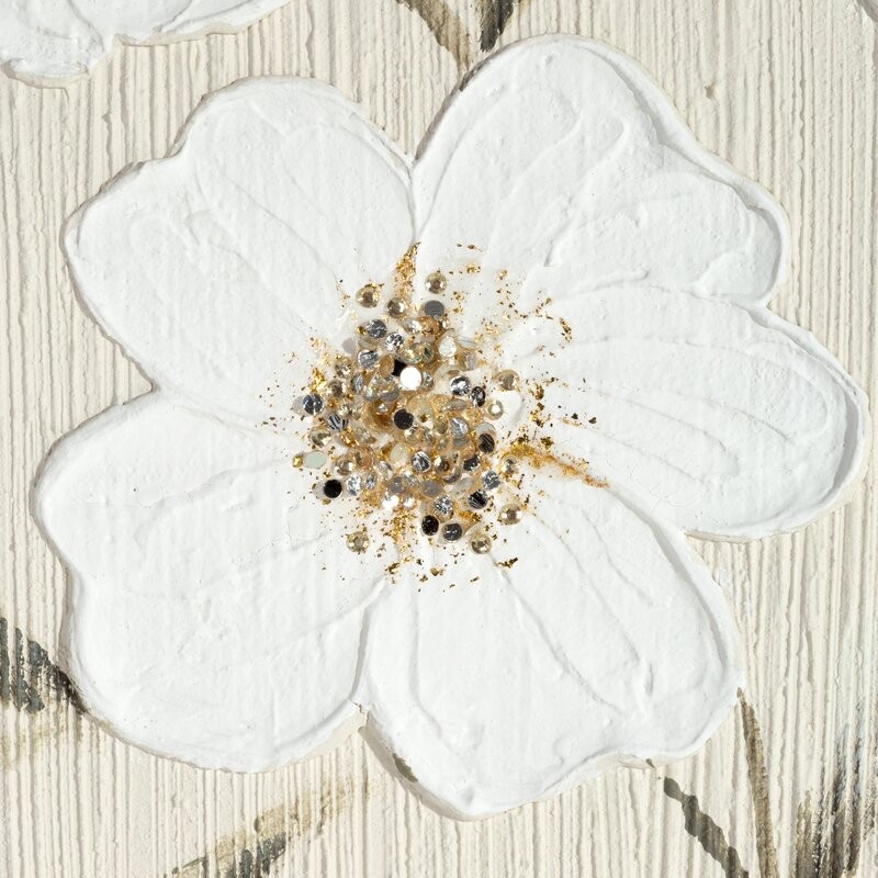 Obraz BLOOM ręcznie malowane na płótnie kwiaty z aplikacją zdobione kryształkami
