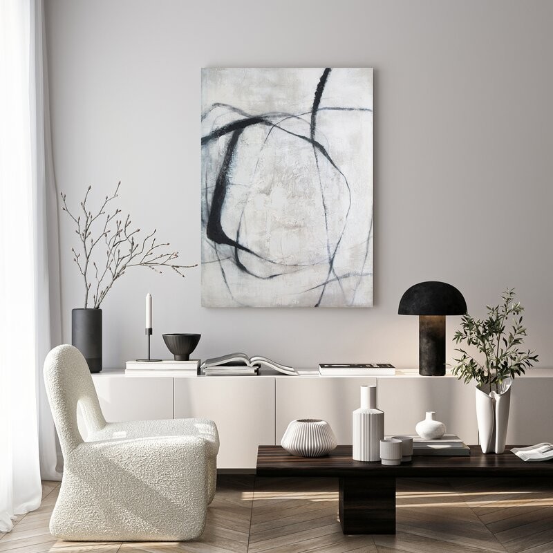 Wprowadź do swojego wnętrza nutę nowoczesnej sztuki dzięki unikalnemu, ręcznie malowanemu obrazowi z motywem abstrakcyjnym. Każdy detal został starannie naniesiony na wysokiej jakości płótno przy użyciu profesjonalnych farb akrylowych, co nadaje dziełu głębi i ekspresji. Idealnie sprawdzi się zarówno w salonie, sypialni, jak i w przestrzeni biurowej.
