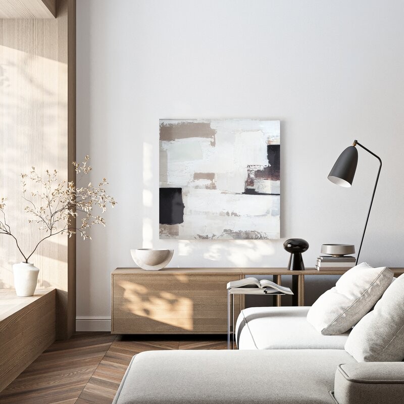 Obraz ręcznie malowany na płótnie szerokość: 80 cm, długość: 80 cm, kolor: beżowy, Skład: płótno, mdf, farba