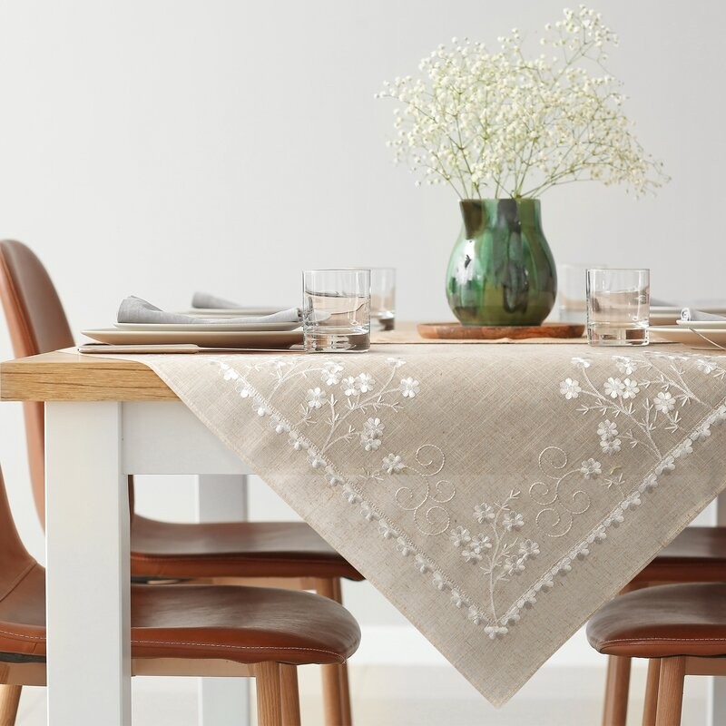 Obrus dekoracyjny szerokość: 140 cm, długość: 220 cm, kolor: beżowy, Gramatura: 170 GSM, Skład: 85% poliester, 15% len
