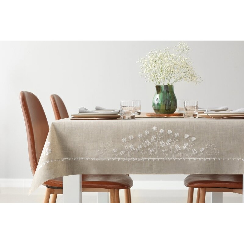 Obrus dekoracyjny szerokość: 140 cm, długość: 220 cm, kolor: beżowy, Gramatura: 170 GSM, Skład: 85% poliester, 15% len