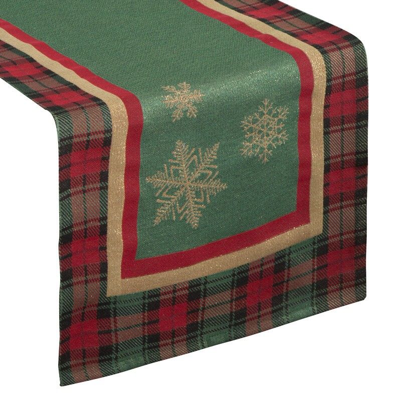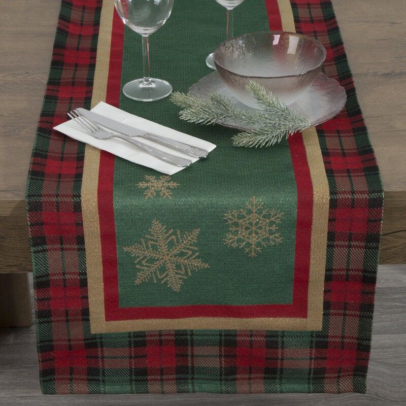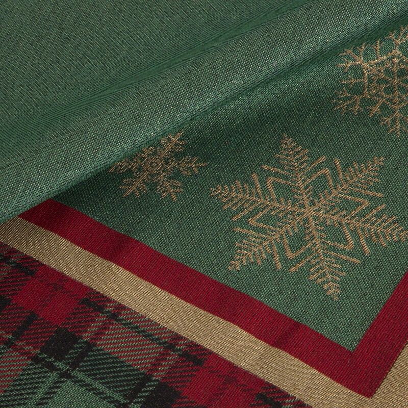 Świąteczny bieżnik gobelinowy z kolekcji STAR wykonany z grubej tkaniny zdobionej motywem kraty i złotych śnieżynek, to efektowna dekoracja dodająca stylu wnętrzu. Grubsza żakardowa tkanina gwarantuje piękny efekt dekoracyjny, a uzyskany techniką tkania wzór sprawia, że obrus pięknie się prezentuje zarówno we wnętrzu w stylu rustykalnym, jak i w nowoczesnej stylizacji retro czy folk. Wysoka jakość oraz precyzja wykonania gwarantują satysfakcję z produktu, a świąteczny motyw i intensywna kolorystyka znakomicie ożywiają wnętrze, wprowadzając do aranżacji radosny świąteczny nastrój.