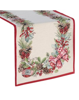 święteczny gobelinowy bieżnik dekoracyjny szerokość: 40 cm, długość: 100 cm, kolor: naturalny, Gramatura: 400 GSM, Skład: 68% poliester, 32% bawełna