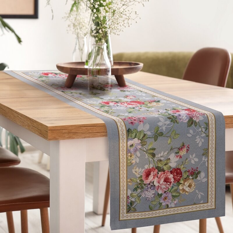 Obrus gobelinowy szerokość: 45 cm, długość: 140 cm, kolor: popielaty, Gramatura: 400 GSM, Skład: 68% poliester, 32% bawełna