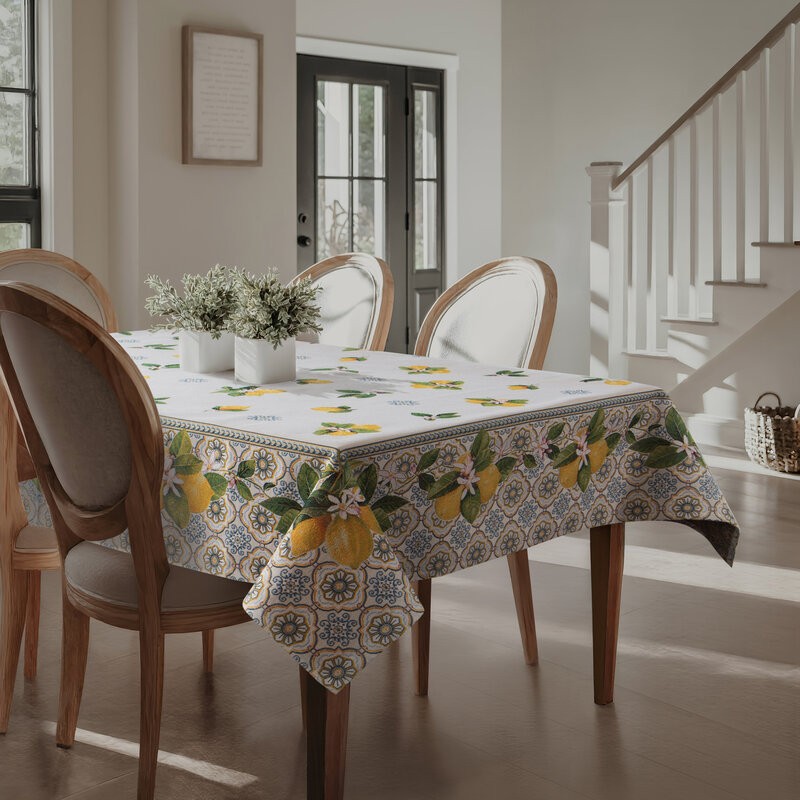 Szukasz wzorów, które pięknie zaprezentują się we wnętrzu? Obrus gobelinowy wykonany z grubej tkaniny ozdobiony wzorem letnich cytryn inspirowany stylem folk, to dekoracja dodająca stylu wnętrzu. Grubsza żakardowa tkanina gwarantuje piękny efekt dekoracyjny, a uzyskany techniką tkania wzór sprawia, że obrus pięknie się prezentuje zarówno we wnętrzu w stylu rustykalnym, jak i w nowoczesnej stylizacji retro czy folk. Wysoka jakość oraz staranne wykonanie gwarantują satysfakcję z produktu, a motyw cytryn znakomicie ożywia wnętrze, wprowadzając do aranżacji świeżość i radosny nastrój.