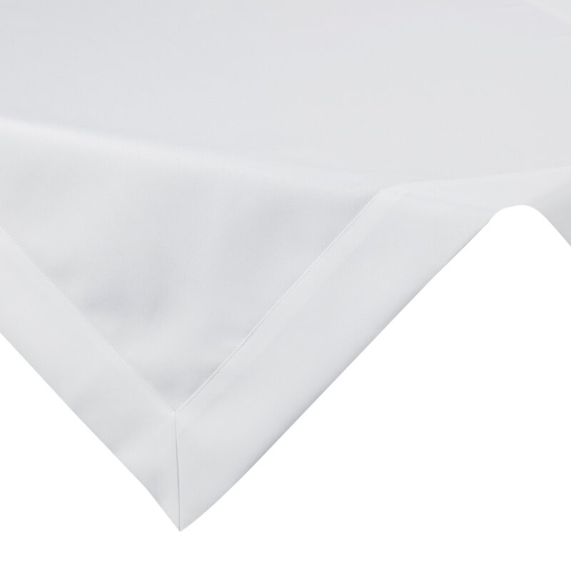 Obrus z delikatną białą lamówką szerokość: 145 cm, długość: 280 cm, kolor: biały, Gramatura: 190 GSM, Skład: 100% poliester