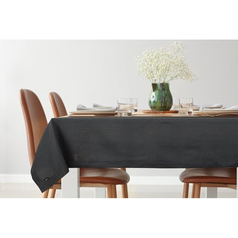 Obrus STELLA 2 w głębokim czarnym kolorze z tkaniny przypominającej płótno. Elegancki detal z podwójną listwą – idealny na uroczystości i odświętne chwile przy stole.