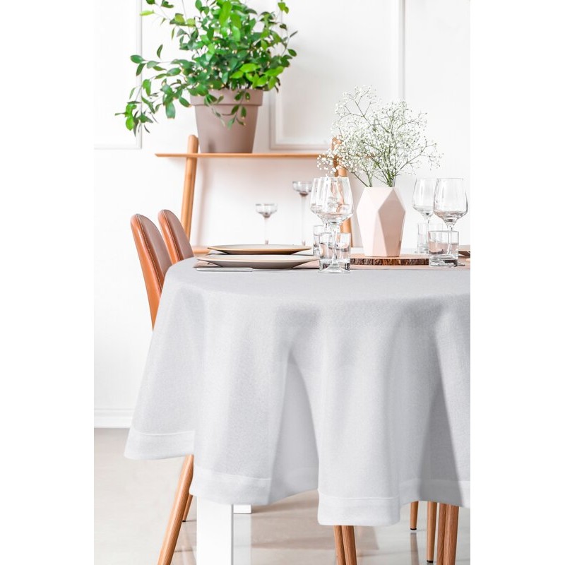Klasyczny biały obrus MADELE z delikatną srebrną lamówką