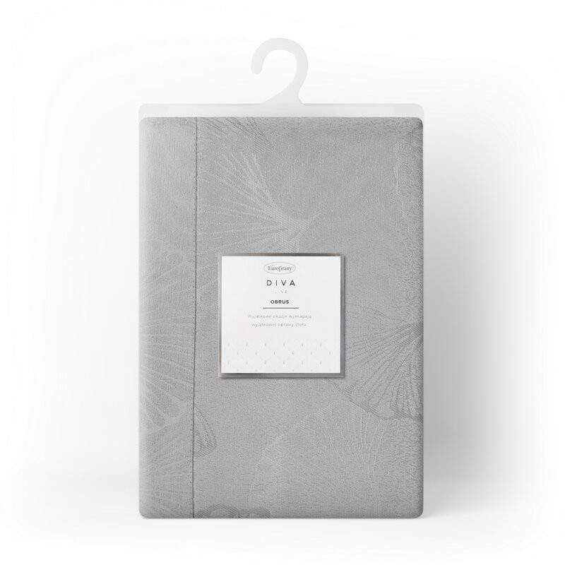 Obrus DIANA plamoodporny zdobiony żakardowym wzorem liści miłorzębu i ozdobna kantą
