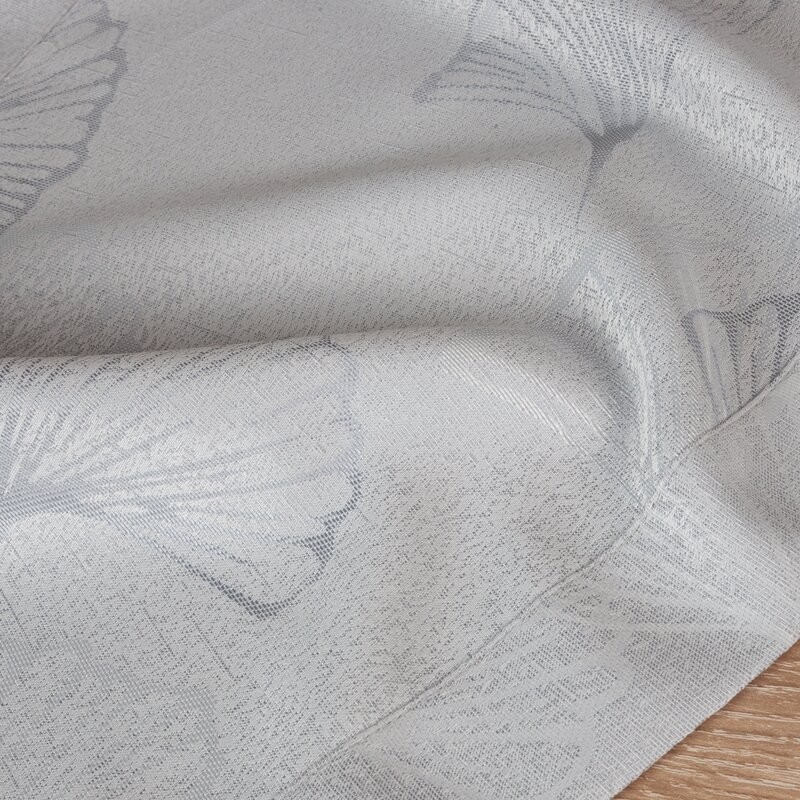Obrus DIANA plamoodporny zdobiony żakardowym wzorem liści miłorzębu i ozdobną kantą