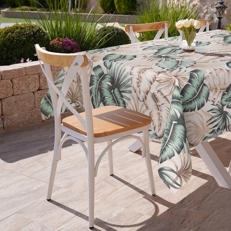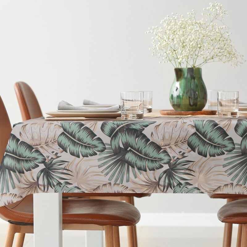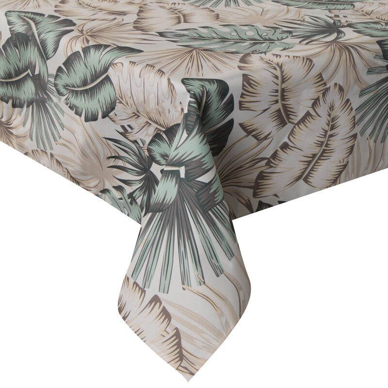Dodaj swojemu stołowi letniego uroku dzięki dekoracyjnemu obrusowi uszytemu z wodoodpornej tkaniny. Jego piękny subtelny motyw egzotycznych liści wprowadzi do Twojej przestrzeni świeżość i kolor, tworząc idealną atmosferę do spotkań na świeżym powietrzu. Dzięki wodoodpornym właściwościom obrus jest odporny na wilgoć i łatwy w czyszczeniu, co czyni go doskonałym wyborem na taras, balkon czy do ogrodu. Stylowy i praktyczny – sprawi, że każdy stół nabierze wyjątkowego charakteru!