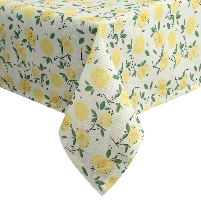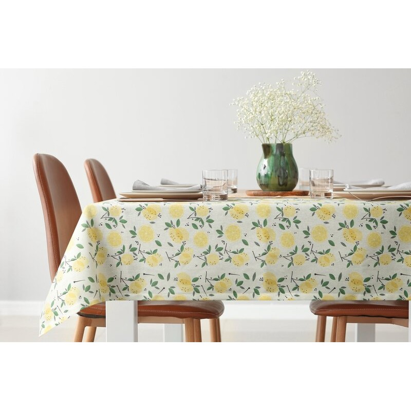 Plamoodporny obrus dekoracyjny z ozdobnym nadrukiem szerokość: 220 cm, długość: 140 cm, kolor: żółty, Skład: 80% poliester, 20% bawełna